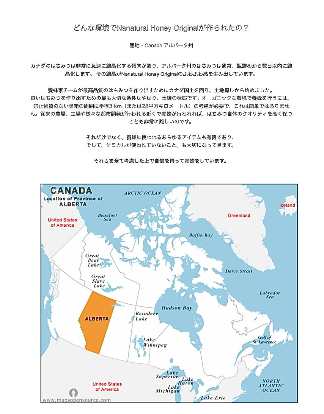 白くふわふわとしている理由は、カナダのアルバータのクリーンな環境から生まれるヘルシーな花々が生み出したものであり、カナダ産のはちみつの特徴です。