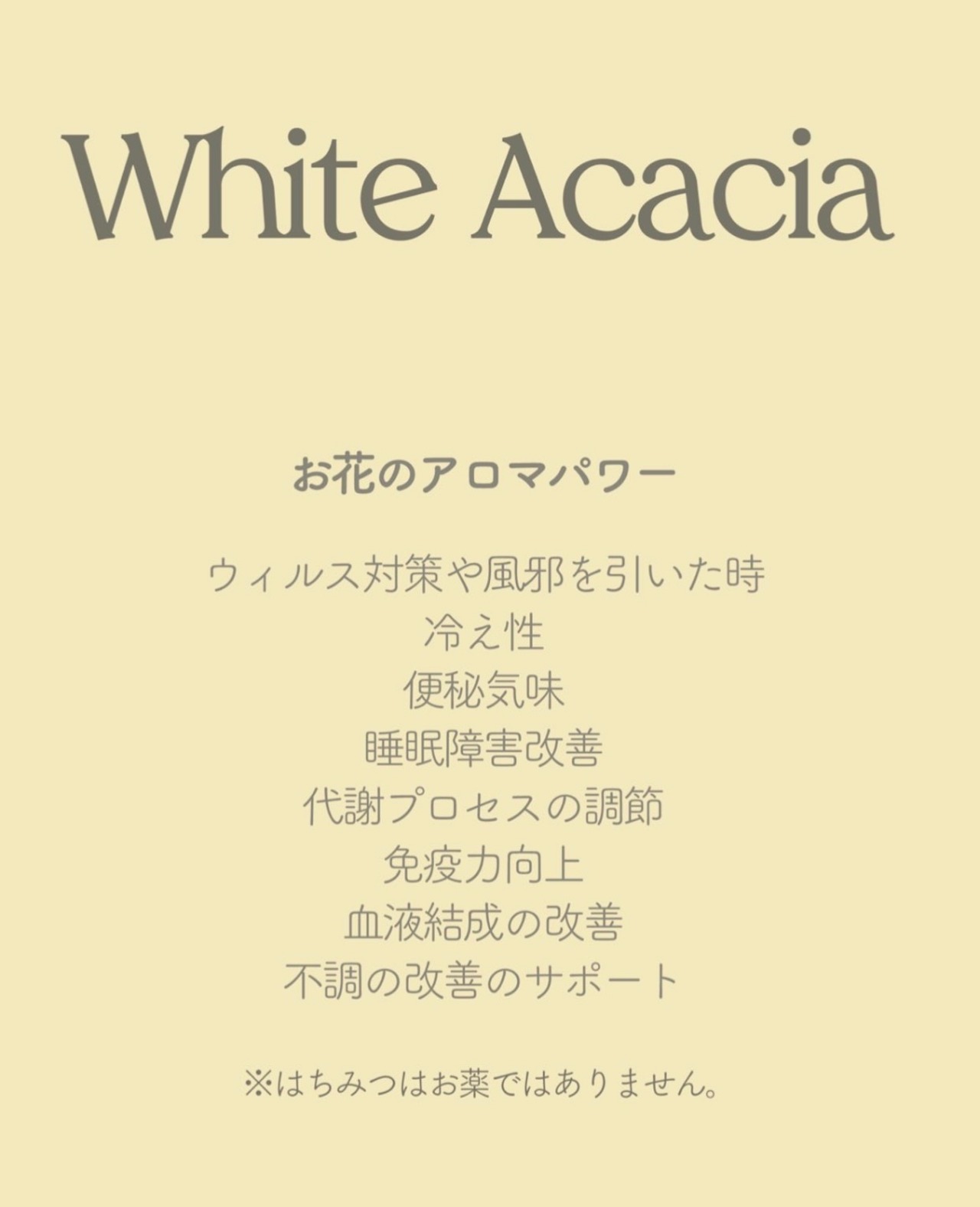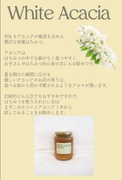 比較的どんな方でもおすすめですので、 はちみつを取り入れたい方はまずこのホワイトアカシア1本から試してみることをお勧めします。